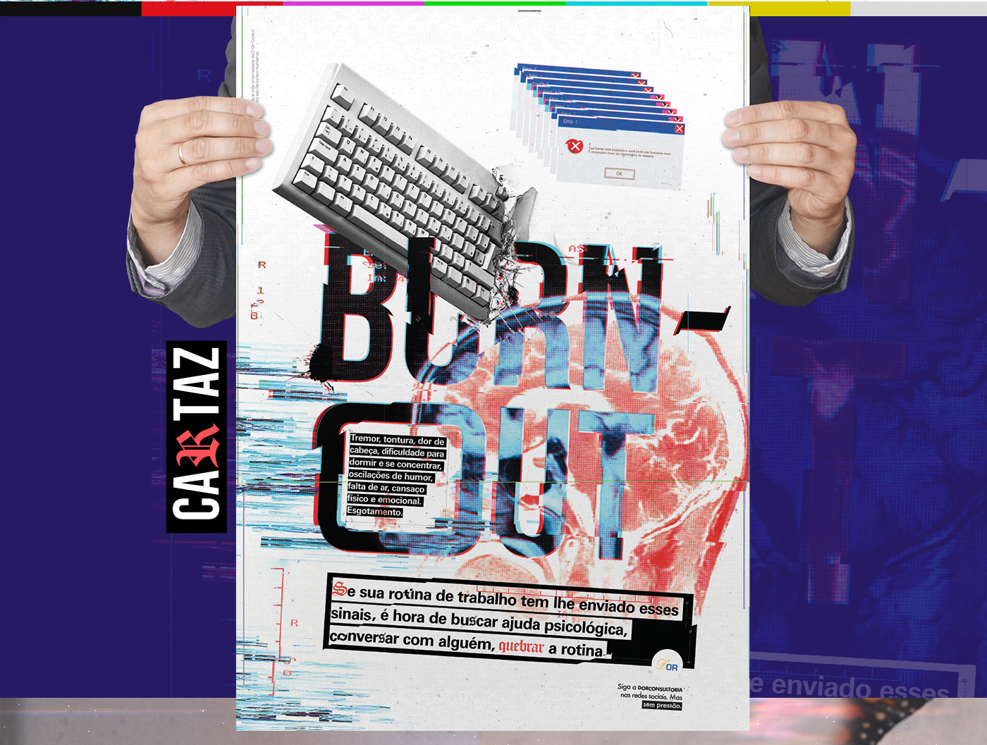 Campanha de prevenção ao burnout. Burnout - Setembro 2019 Direção de criação: Alexandre Buika Copyright: Ricardo Freiesleben / Eduardo Prado Direção de arte e Design: Vitu Guardiano / Cauê Cremonini / Clayton Hayashi
